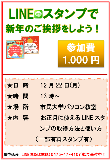 お申込み・お問い合わせはLINEまたはお電話(0475-47-4107)で